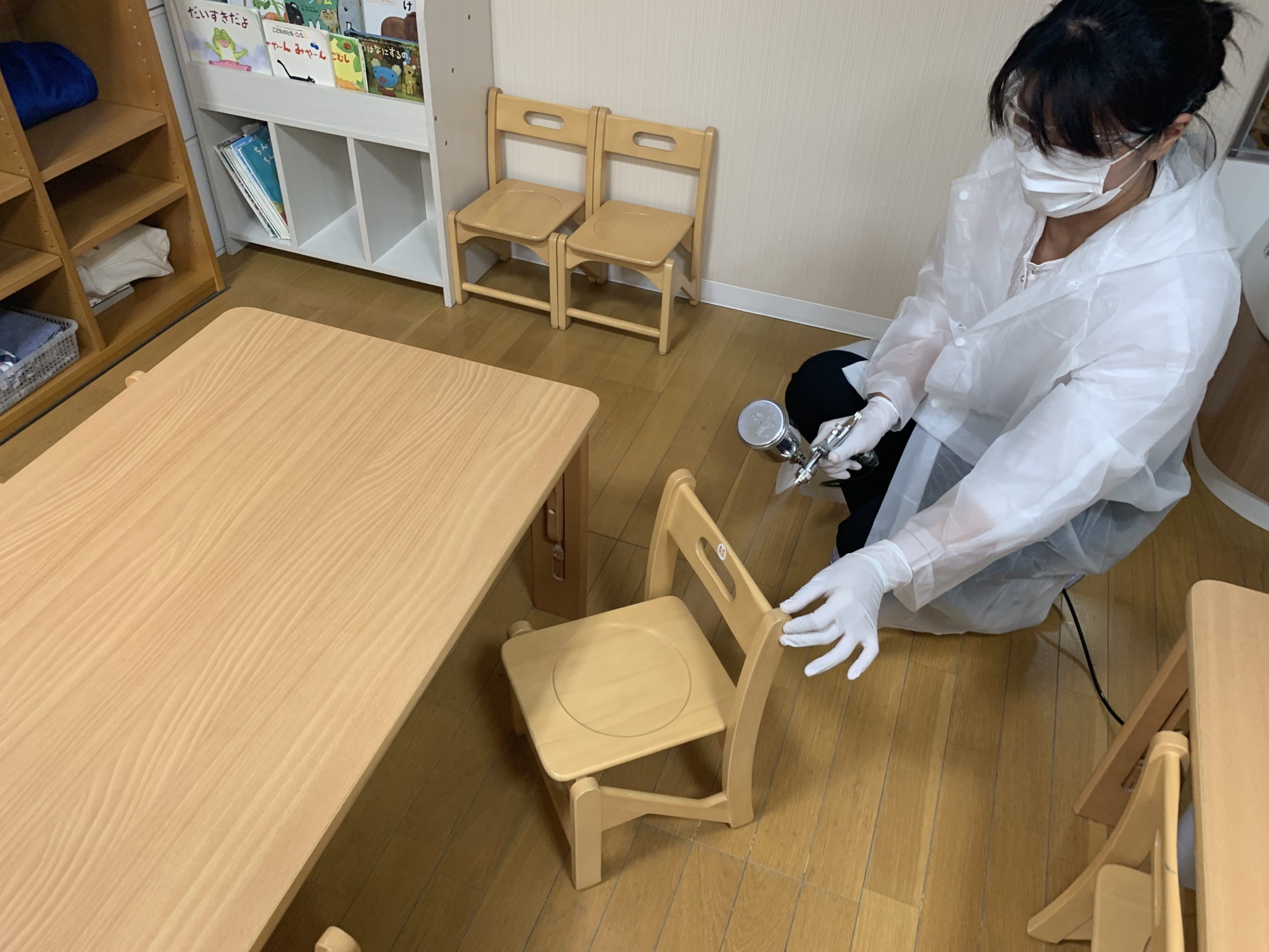 T保育園では、普段の生活で使うお部屋やオモチャ、水回りなど、幼児が入る場所、手に触れる物すべてに抗菌コーティングを施工しました。