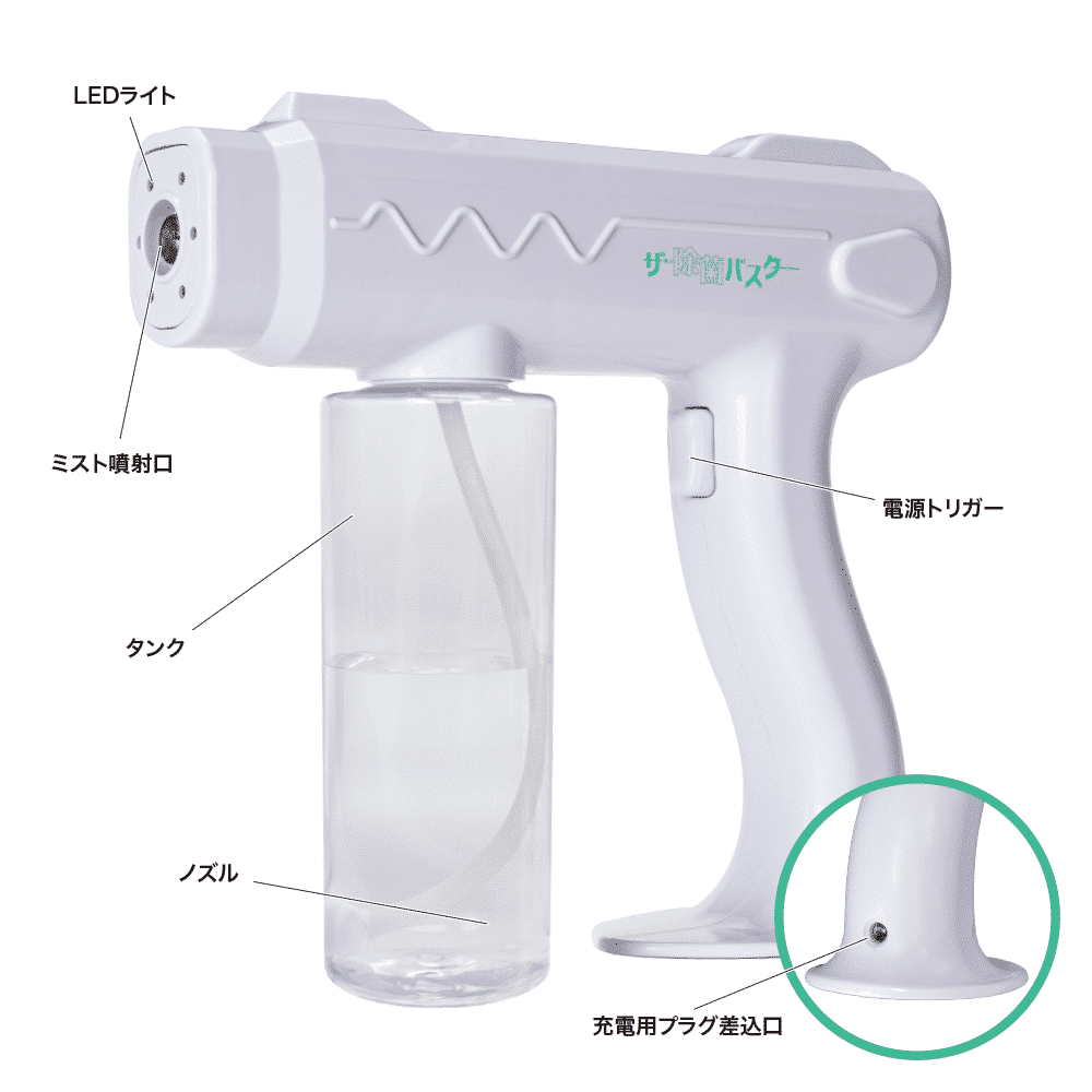 LED照射で薄暗い場所でも噴霧範囲が分りやすく、くまなく噴霧可能です。